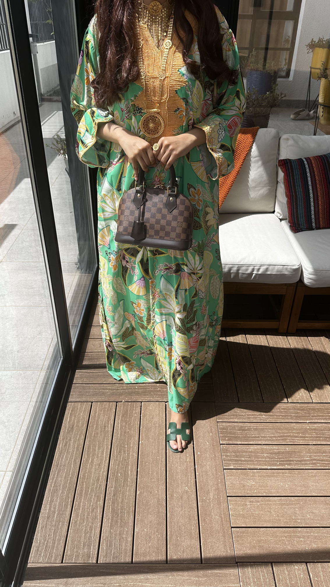 طول الكم لجميع المقاسات: ٢١ انش/ عرض الصدر لجميع المقاسات: ٢٥ انش/ ملاحظة: قد تختلف الوان التطريز من قطعة الى اخرى اختلافا بسيطًا، نوع القماش ريون ايطالي/
